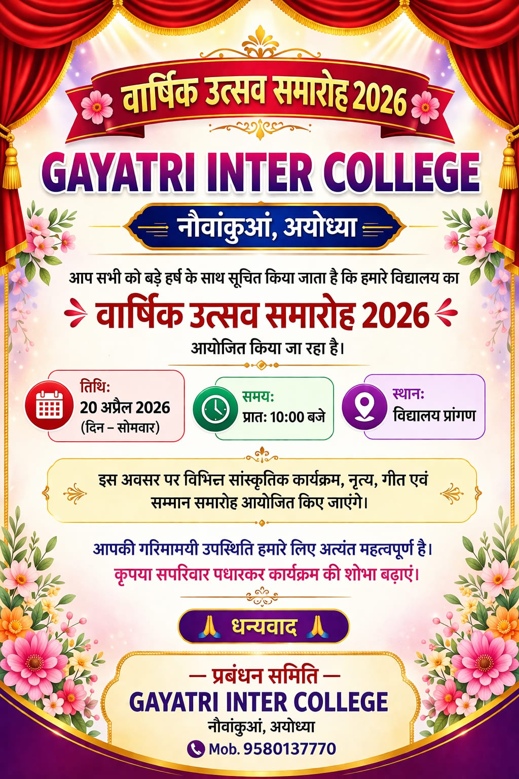 “Education is the most powerful weapon which you can use to change the world. At Gayatri Inter College, we don’t just teach lessons; we ignite minds and build characters. Join us in our mission to nurture young talents and transform them into the leaders of tomorrow. Let’s shape a brighter future together!”
